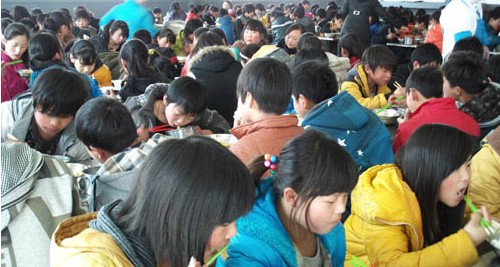 花(huā)園鄉(xiāng)一(yī)中的(de)γ♣學生(shēng)們在餐廳有(yǒu)序就(jiù)餐